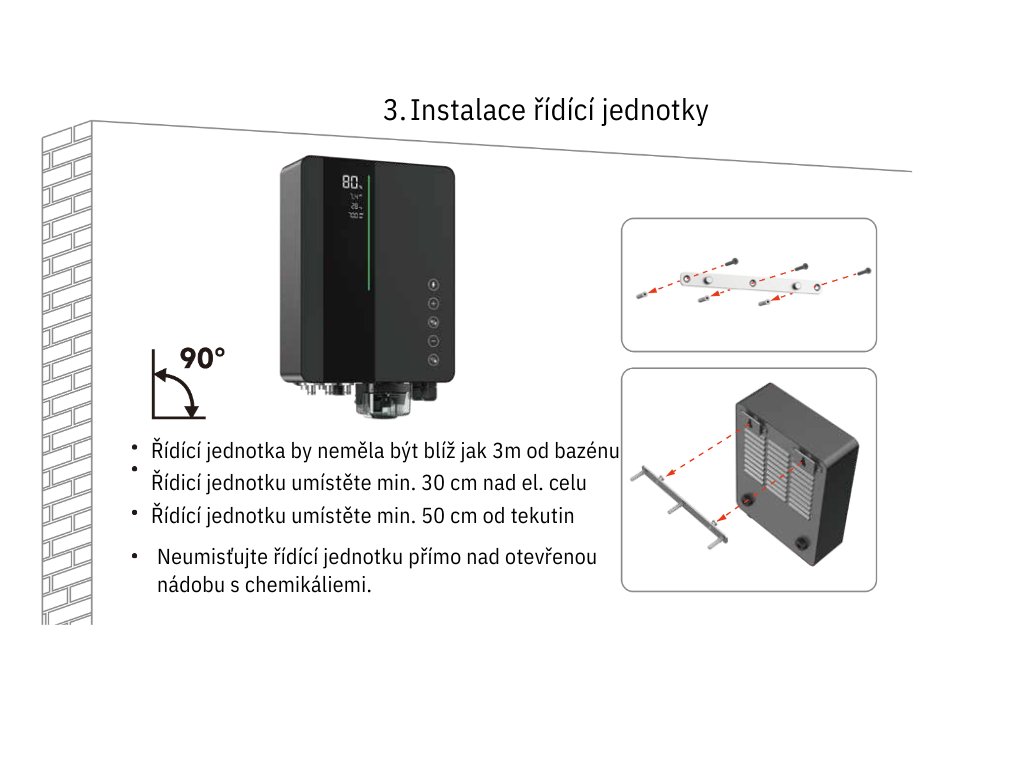 Stačí přidat sůl do bazénu a Automatická dávkovací stanice ICS16 MEDIUM se postará o vše ostatní. Přeměňuje sůl na plynný chlór pomocí elektrolýzy, čímž eliminuje potřebu tradičních chemických přípravků. Zároveň bude automaticky měřit a upravovat hodnotu PH. Čistá a zdravá voda bez podráždění očí a pokožky je nyní na dosah ruky!