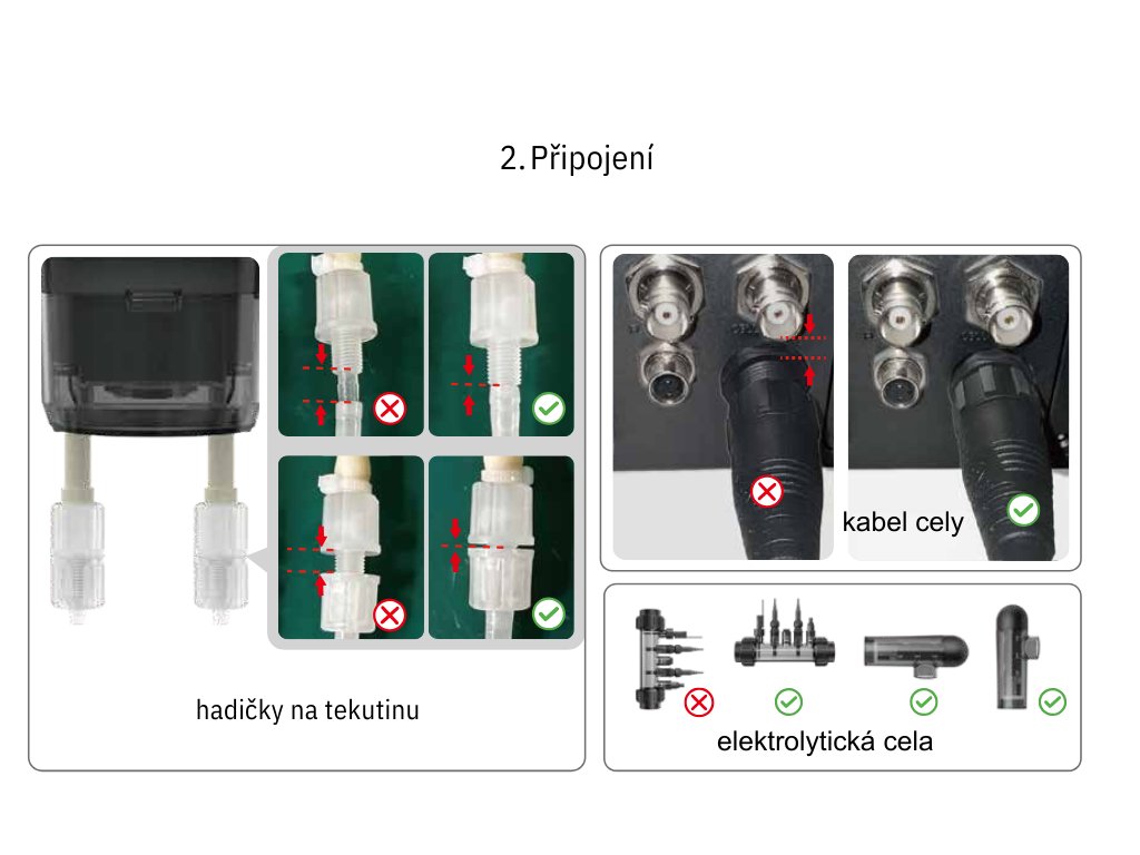 - Tlak pro elektrolytickou buňku: 3 bary (držák senzoru) / 4,5 baru (elektrolytická buňka)