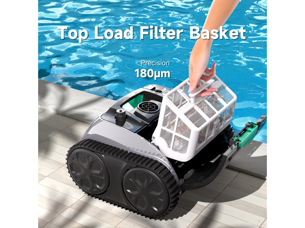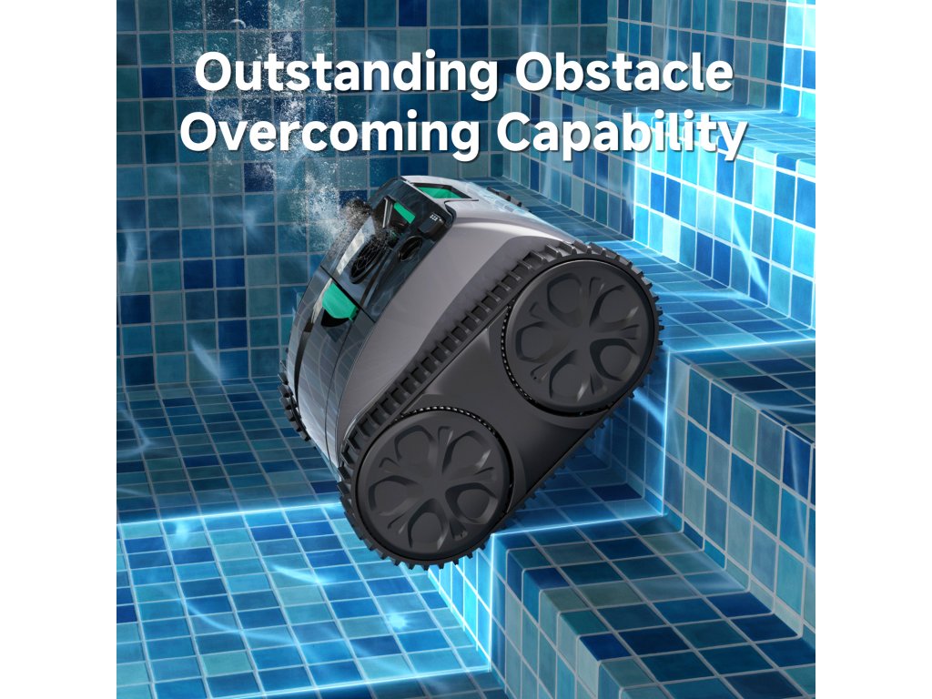 Trojitý motor zajišťuje silný sací výkon i plynulý pohyb ve vodě. Vysavač se snadno vyhne překážkám a nezasekává se, takže čištění probíhá bez přerušení a zbytečných výpadků.