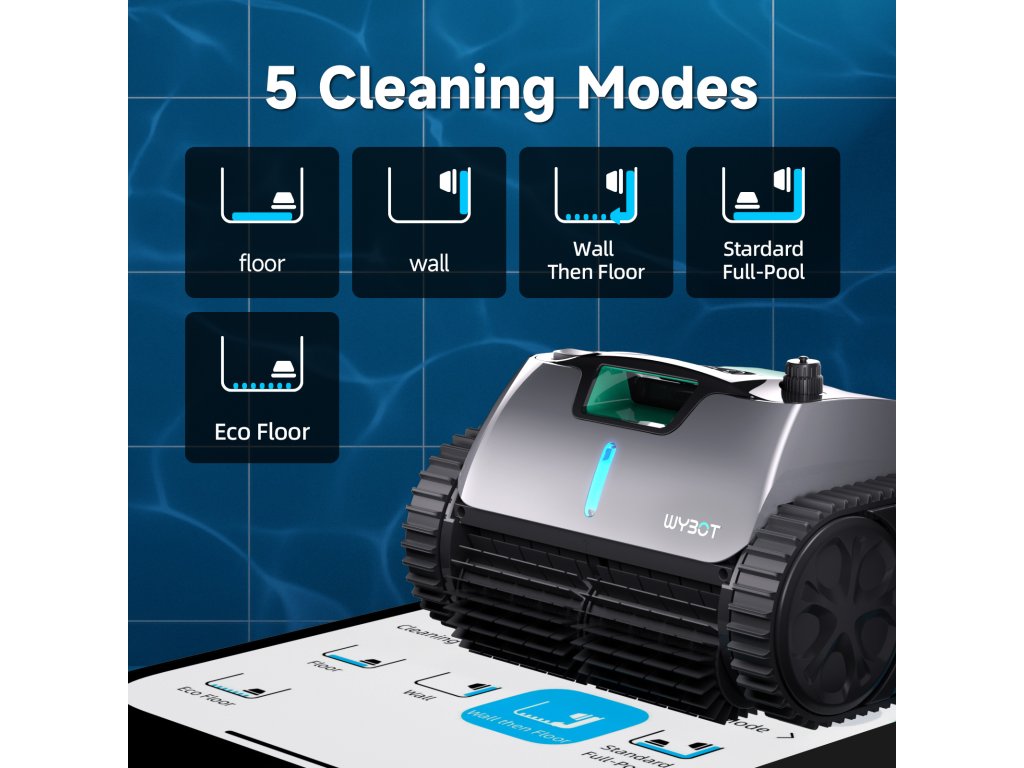 WYBOT C1 Pro posouvá automatické čištění bazénu na vyšší úroveň. Díky kombinaci gyroskopu a infračervených senzorů se dokáže lépe orientovat v prostoru, přesněji plánovat trasu a efektivněji pokrýt celý bazén.