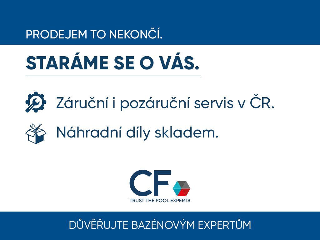 Značka CF od společnosti CF Group představuje jedinečné spojení rodinné tradice, technické odbornosti a odpovědného přístupu k vodě jako nejcennějšímu přírodnímu zdroji. S více než 60 lety zkušeností je CF Group předním evropským výrobcem vysoce kvalitního bazénového vybavení a technologií pro úpravu vody, přičemž působí ve více než 40 zemích světa a provozuje 14 výrobních závodů v EU. Jejím posláním je zpřístupnit čistou, zdravou a bezpečnou vodu všem – díky inovativním produktům, profesionálním řešením a důrazu na udržitelnost. Se značkou CF získáváte spolehlivého partnera pro stavbu, modernizaci i každodenní provoz bazénu.