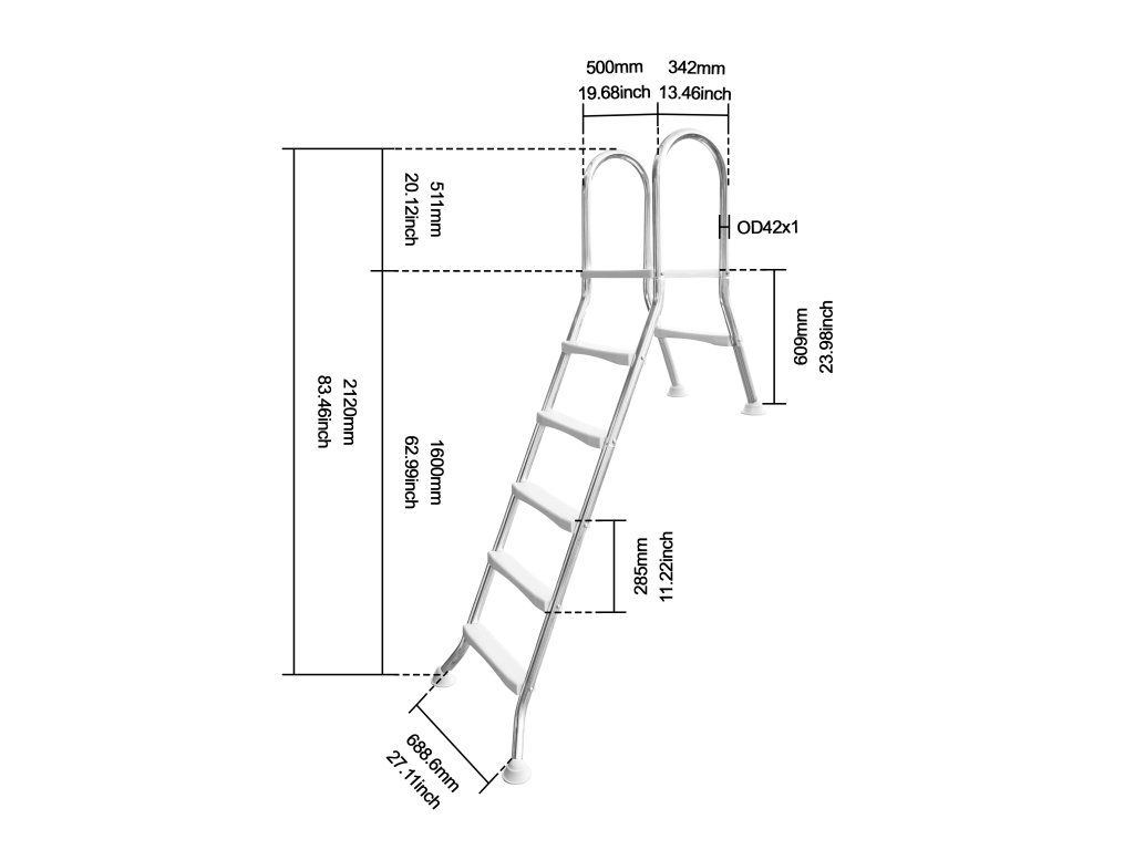 - Stabilita: Schůdky mají 1 schod na vnější straně a 5 schodů na vnitřní straně bazénu, což usnadňuje pohodlný a bezpečný přístup.