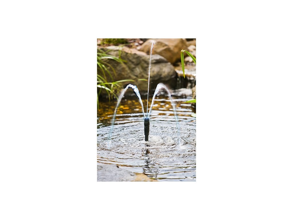 Výkonné jezírkové čerpadlo s průtokem 1000 l/h zajišťuje efektivní cirkulaci vody, což podporuje její okysličení a celkovou biologickou rovnováhu. Součástí balení jsou tři výměnné trysky (zvon, kaskáda, pohár), díky nimž lze jednoduše měnit vzhled vodních efektů.