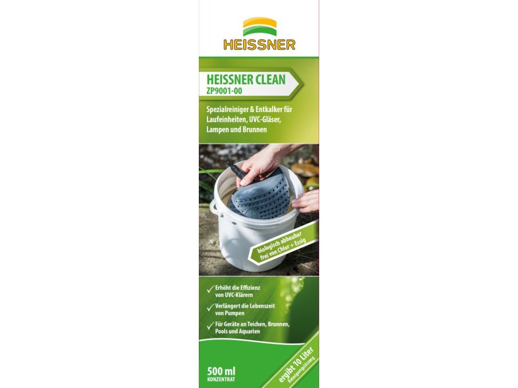 Heissner Clean je ideální pro čerpadla, filtrační jednotky, UV lampy a fontány v jezírkách, akváriích nebo bazénech. Pravidelná údržba zvyšuje efektivitu UVC lamp, prodlužuje životnost čerpadel a udržuje zařízení ve špičkovém stavu.