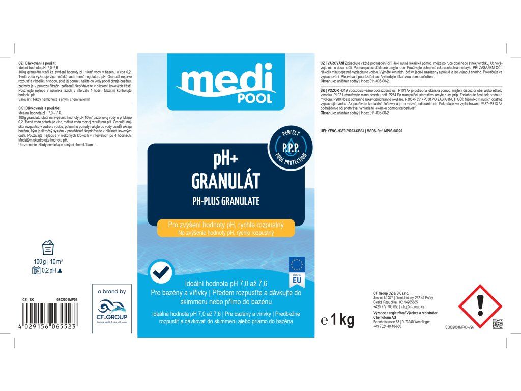 Značka mediPOOL přináší novou úroveň péče o bazénovou vodu a stojí za ní skupina CF GROUP – největší výrobce bazénové chemie v Evropě. Její produkty denně využívá více než 100 milionů lidí ve 40 evropských zemích. Díky plně automatizované výrobě máte jistotu maximální kvality, bezpečnosti a dlouhodobě spolehlivého účinku.