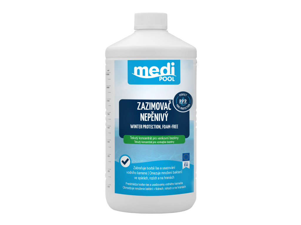 Připravte svůj bazén na zimní období jednoduše a bez starostí. Tekutý přípravek mediPOOL Zazimovač chrání vodu i povrchy bazénu během celé zimy, takže vás na jaře nečeká nepříjemné překvapení v podobě zelené nebo zakalené vody.