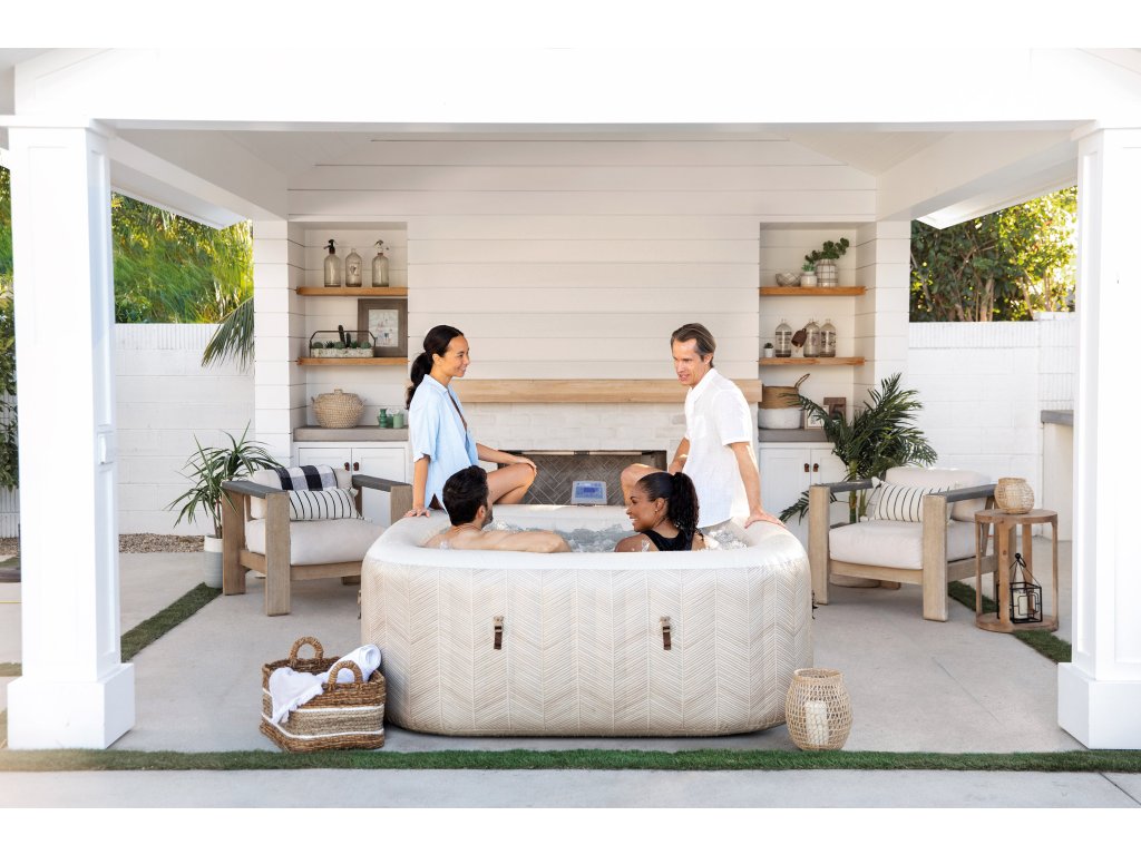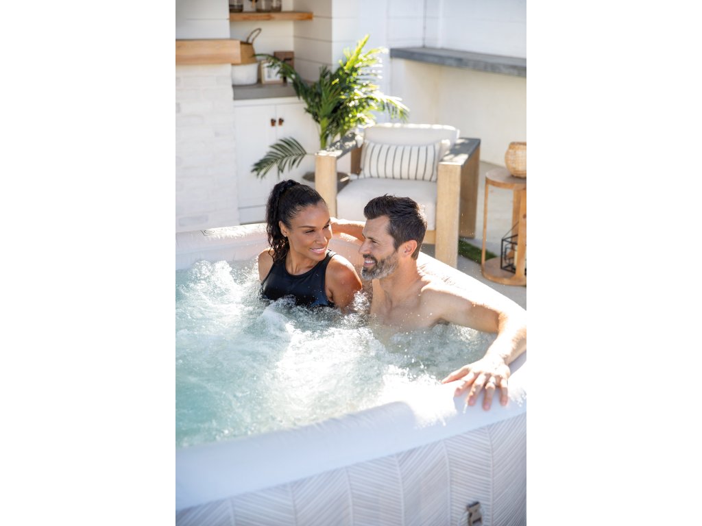 Používání vířivky je maximálně jednoduché — rychlé nafouknutí pomocí integrovaného systému, ovládání přes odnímatelný bezdrátový panel nebo přes mobilní aplikaci. V balení samozřejmě najdete kryt proti nečistotám, podložku chránící dno, transportní tašku i filtrační kartuše.