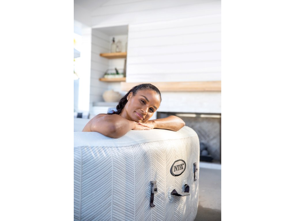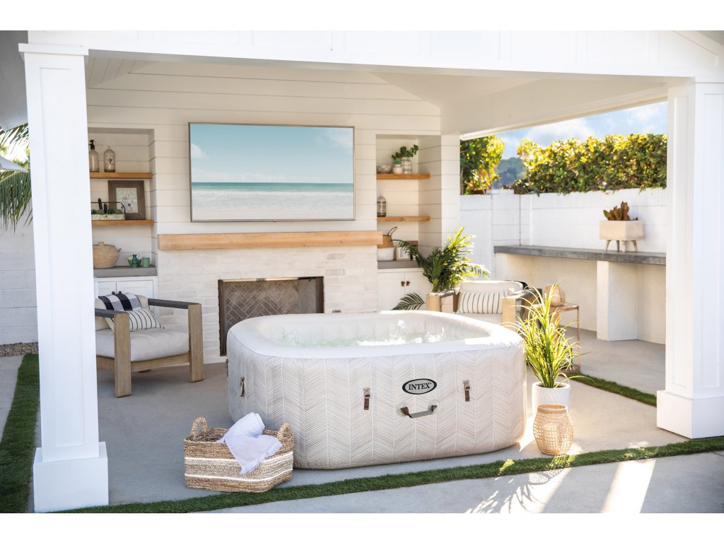Přeměňte Váš prostor na terase či zahradě ve stylovou oázu klidu a pohody s vířivkou Intex PureSpa Chevron Deluxe. Její elegantní čtvercový tvar a nový poutavý pruhovaný design dělají z vířivky moderní a atraktivní doplněk exteriéru — ideální pro Vaší každodenní relaxaci, s rodinu nebo s přáteli.