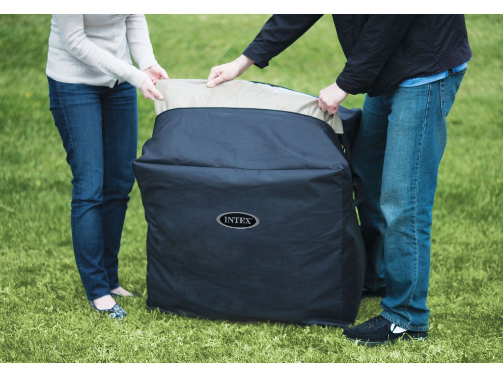 V balení nechybí vše, co potřebujete k provozu: kryt proti nečistotám, podložka pro ochranu dna, transportní taška, hadice na nafukování ani kvalitní filtrační kartuše.
