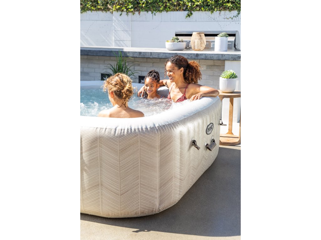 Vytvořte si doma vlastní stylovou relaxační zónu s vířivkou Intex PureSpa Chevron Bubble Deluxe, která vyniká moderním poutavým pruhovaným designem a elegantním čtvercovým tvarem. Tato verze poskytuje komfortní prostor až pro 6 osob, takže je ideální pro rodinnou pohodu i posezení s přáteli. S objemem 1098 litrů a příjemně tvarovaným vnitřním prostorem nabízí tato vířivka výjimečné pohodlí pro všechny.