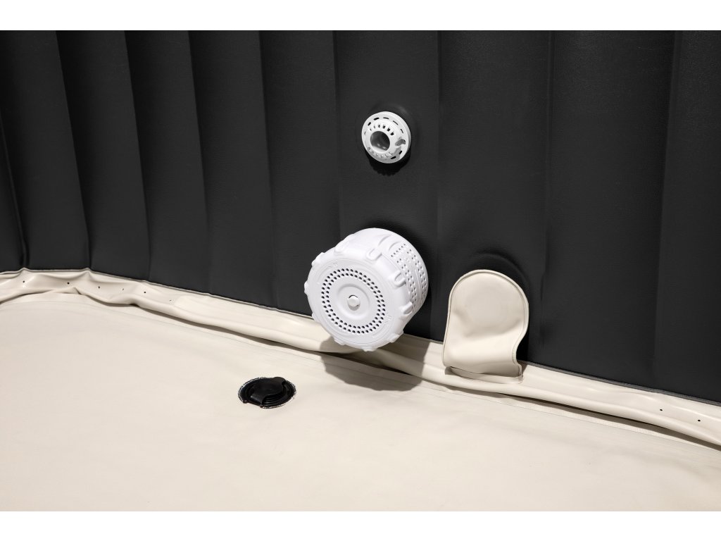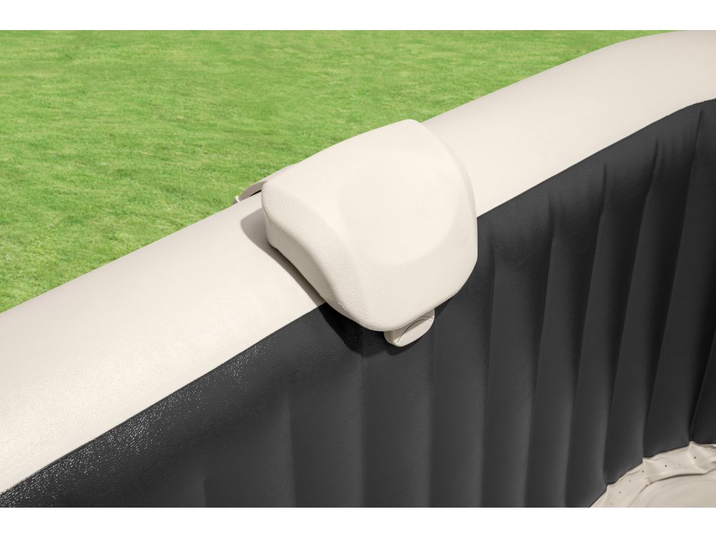 Robustní konstrukce z prémiového třívrstvého PVC SuperTough zaručuje maximální stabilitu a dlouhou životnost. K pohodlí přispívají dvě prémiové pěnové opěrky hlavy — pohodlné i při delší relaxaci. Dále oceníte snadné napuštění díky integrovanému systému QuickFill, odnímatelný bezdrátový ovládací panel (s možností ovládání přes mobilní aplikaci) a atmosféru navodí proměnlivé LED osvětlení, které podtrhne večerní posezení.