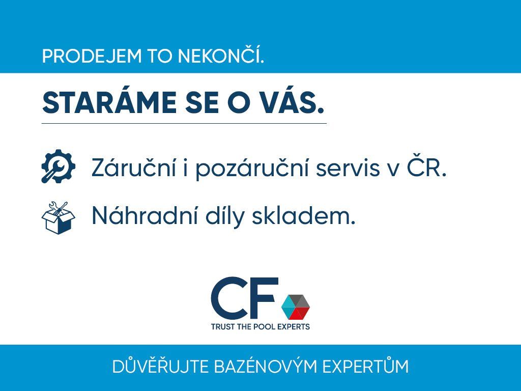 Značka CF od společnosti CF Group představuje jedinečné spojení rodinné tradice, technické odbornosti a odpovědného přístupu k vodě jako nejcennějšímu přírodnímu zdroji. S více než 60 lety zkušeností je CF Group předním evropským výrobcem vysoce kvalitního bazénového vybavení a technologií pro úpravu vody, přičemž působí ve více než 40 zemích světa a provozuje 14 výrobních závodů v EU. Jejím posláním je zpřístupnit čistou, zdravou a bezpečnou vodu všem – díky inovativním produktům, profesionálním řešením a důrazu na udržitelnost. Se značkou CF získáváte spolehlivého partnera pro stavbu, modernizaci i každodenní provoz bazénu.
