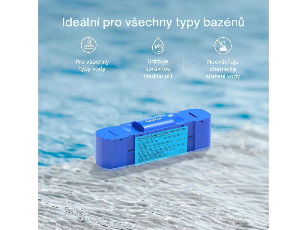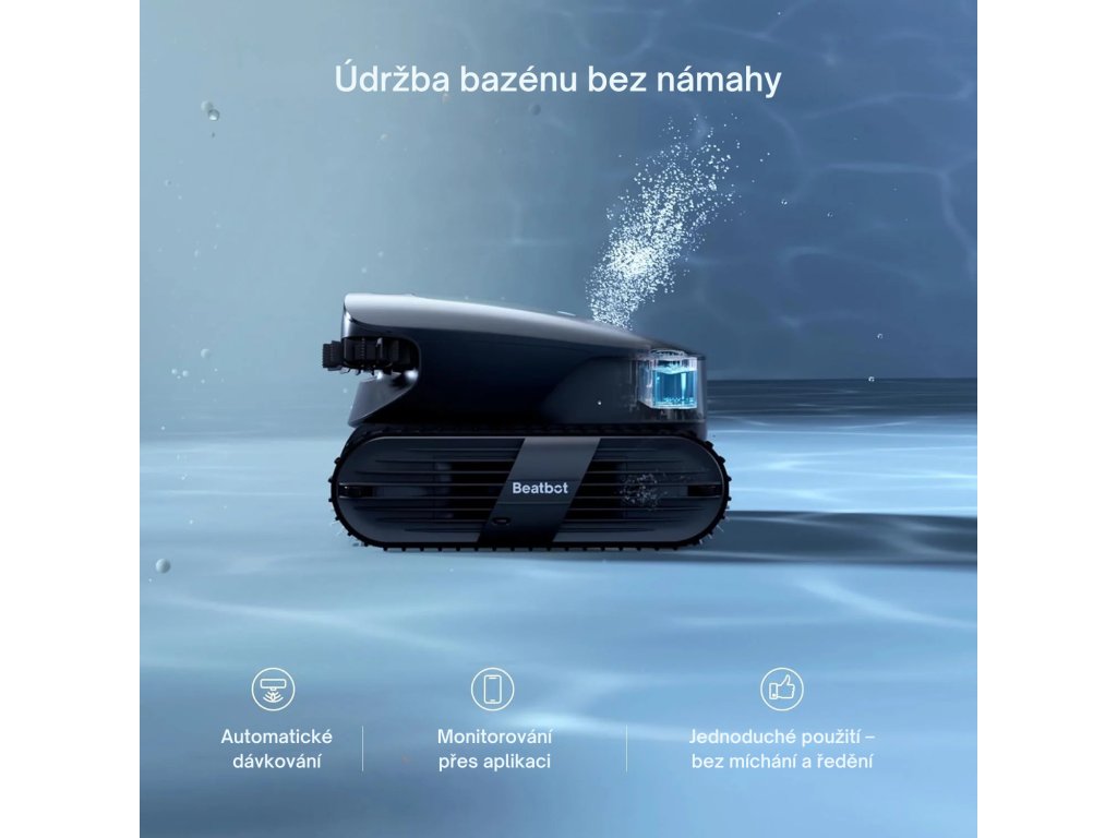 Díky automatickému dávkování během čištění robotickým vysavačem Beatbot se nemusíte starat o ruční aplikaci. Produkt je pH neutrální a kompatibilní se všemi typy bazénů, včetně chlorovaných, slaných nebo hybridních systémů, a funguje bez ovlivnění chemie vody. Užijte si křišťálově čistou, bezpečnou a zdravou vodu bez chemie – ideální pro pravidelnou údržbu i náročnější péči o bazény.
