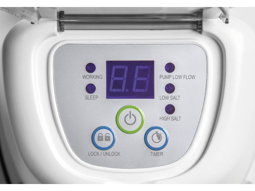 Solinátor je vybavený časovačem pro přesné spouštění operace. Připojení solinátoru do okruhu probíhá přes standardní 32mm hadice, přičemž jednu hadici naleznete přímo v balení. Lze připojit i na 38mm hadice přes spojku 32/38mm (není součástí balení). Tělo solinátoru je chráněno odolností IPX5 a dokáže produkovat až 2 g chlóru za hodinu. V zařízení naleznete i elektronickou ochranu minimálního průtoku, který dokáže zařízení regulovat v rozmezí od 1,2 do 3,7 m3 za hodinu. Tento solinátor má funkci funkci BOOST pro okamžité zvýšení produkce chlóru v případě potřeby.