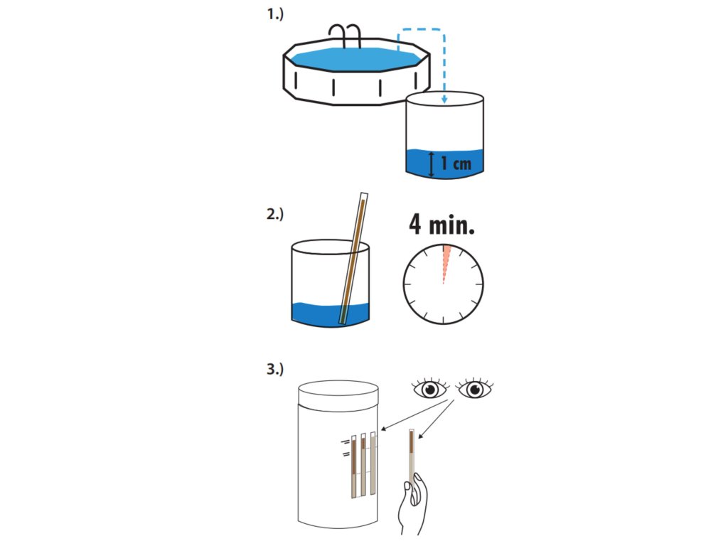 Snadné použití: Stačí ponořit testovací proužek do vody na 4 minuty a okamžitě odečíst hodnotu