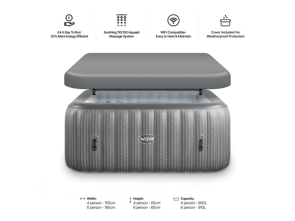 Na první pohled vás zaujme čtvercový tvar, který není jen designovým prvkem, ale především praktickým řešením. Oproti klasickým kulatým vířivkám umožňuje efektivně využít prostor – perfektně zapadne do rohů terasy nebo zahrady a eliminuje nevyužité „mrtvé zóny“. Výsledkem je více místa pro vás i vaše blízké.