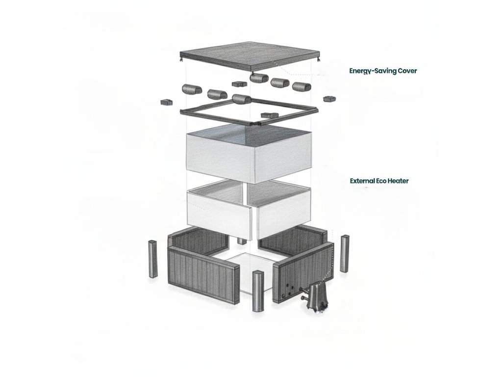 Srdcem této vířivky je unikátní konstrukce FRAME, která v kombinaci s pokročilou izolací přináší až o 60 % vyšší energetickou účinnost než běžné nafukovací modely. Výsledkem je rychlejší ohřev, delší udržení teploty a výrazně nižší provozní náklady.